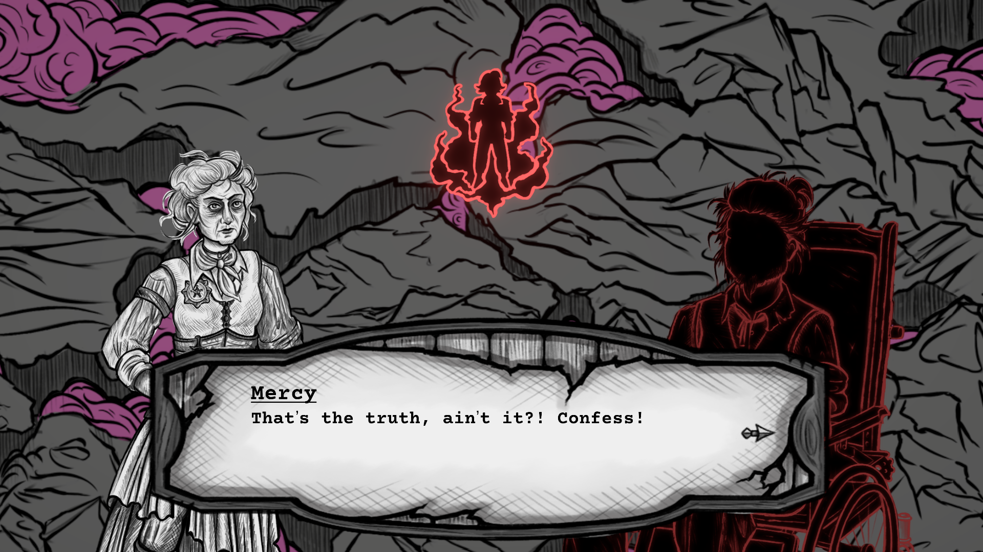 The Maddening Mercy is a western-themed murder mystery game starring a psychic marshal who probes into people's minds
